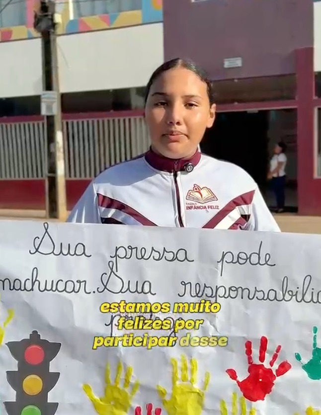 Durante a ação, as crianças participaram ativamente, exibindo mensagens educativas e interagindo com motoristas que passavam pelo local. A proposta foi justamente utilizar a sensibilidade e o olhar das crianças para chamar a atenção da população sobre a importância do respeito às leis de trânsito, da prudência ao volante e da preservação da vida.