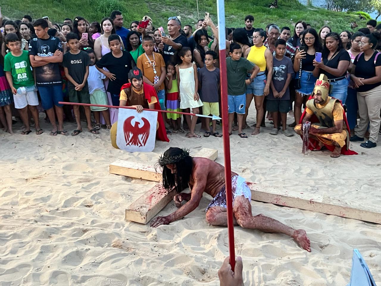 Barreirinhas (MA) – A fé e a emoção tomaram conta do Morro da Ladeira na tarde deste sábado (4 de abril). Centenas de pessoas acompanharam, com devoção e lágrimas nos olhos, mais uma emocionante apresentação do Espetáculo da Paixão de Cristo, uma das tradições mais fortes da Semana Santa na cidade.