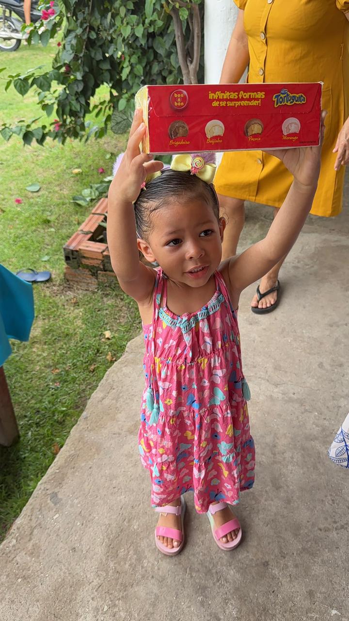 Acompanhada de amigos e colaboradores, Juanires percorre os locais distribuindo os chocolates pessoalmente, proporcionando momentos de felicidade e mostrando o lado solidário que vai além das redes sociais.