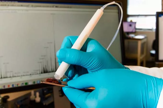 A caneta é conectada a um espectrômetro de massas, equipamento capaz de identificar moléculas e revelar sua “assinatura química”. Durante a cirurgia, o médico encosta a ponta da caneta sobre o tecido suspeito, que libera uma microgota de água estéril. Essa gota extrai moléculas do tecido e é aspirada para o espectrômetro, que identifica o padrão molecular em tempo real, mostrando se o tecido é saudável ou cancerígeno.
