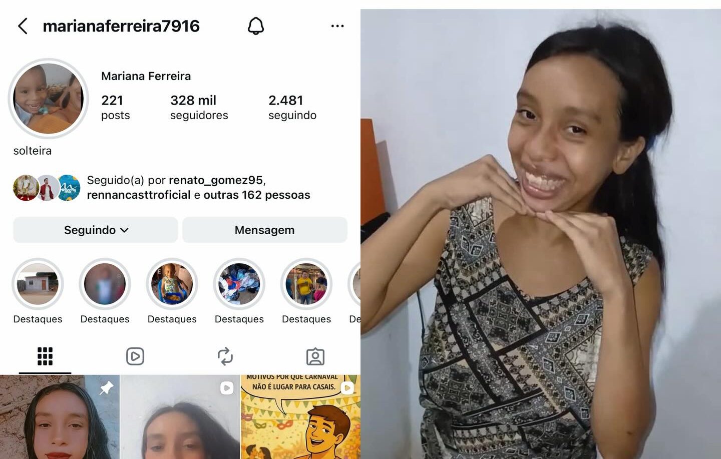 Com toda a repercussão, o perfil de Mariana no Instagram cresceu rapidamente e já ultrapassa a marca de 300 mil seguidores, mostrando a grande mobilização em torno da sua história.