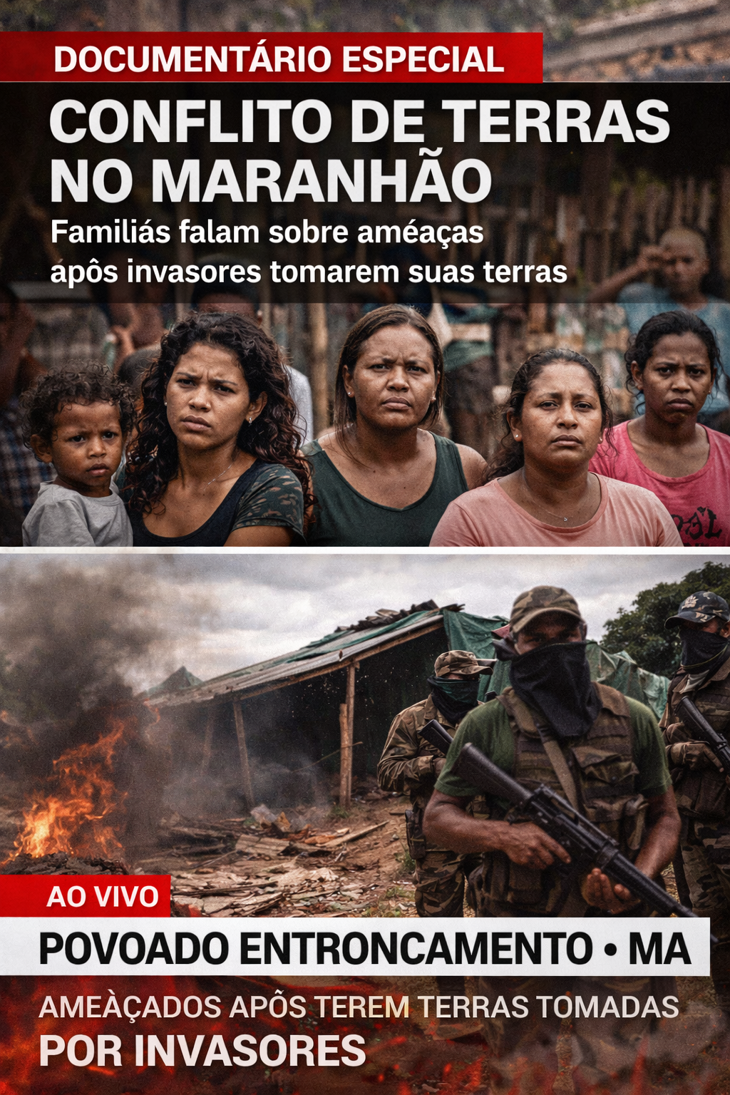 Um documentário divulgado recentemente trouxe à tona um grave conflito de terras no povoado Entroncamento, localizado no município de São Bernardo, no interior do Maranhão. A produção reúne relatos de famílias que afirmam estar sofrendo ameaças após terem suas terras tomadas por invasores.
