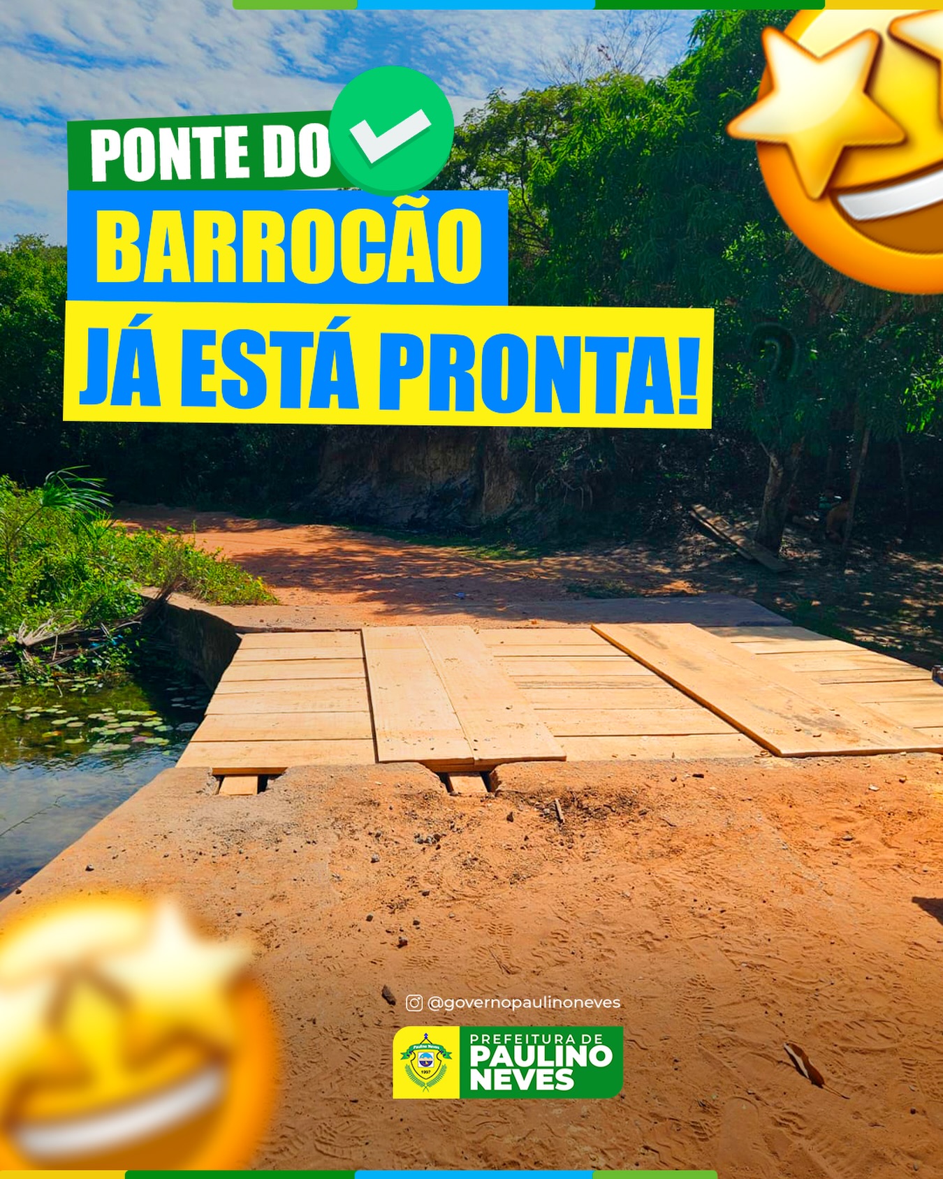 A Ponte do Barrocão, em Paulino Neves, está concluída! A nova estrutura traz mais mobilidade, segurança e desenvolvimento para moradores, produtores e visitantes da região, garantindo melhor acesso e circulação. A Prefeitura segue trabalhando para uma cidade cada vez melhor.