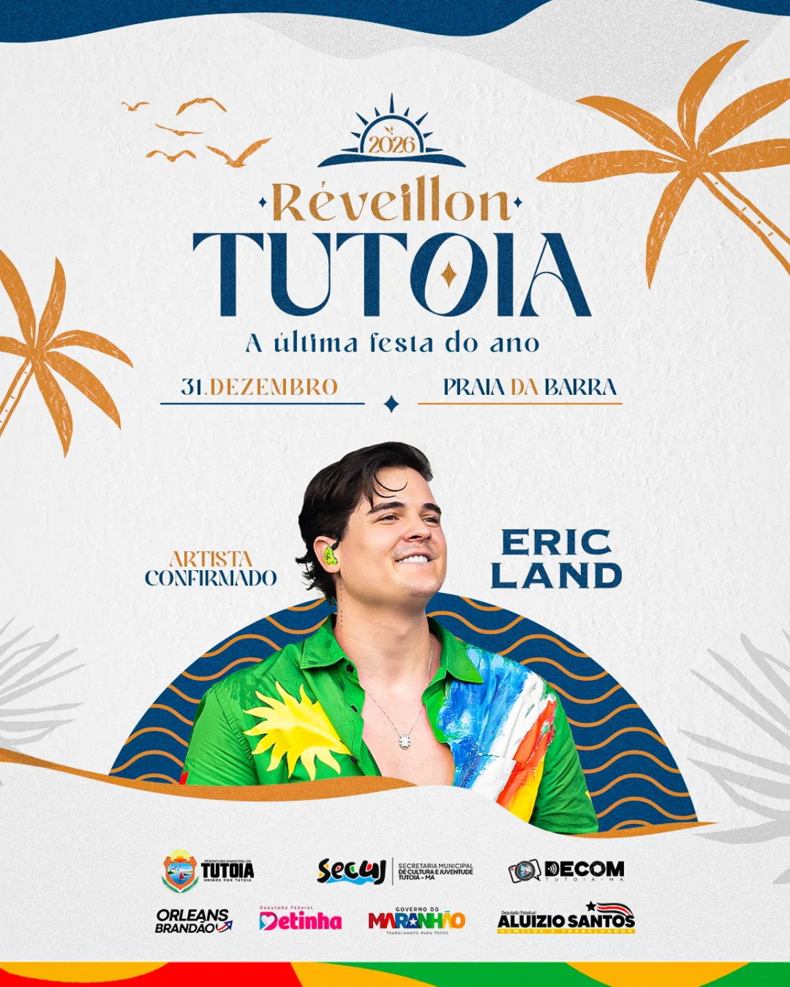 A cidade de Tutóia se prepara para um Réveillon inesquecível na Praia da Barra. A Secretaria Municipal de Cultura confirmou que o cantor Eric Land será a atração principal da festa, que promete celebrar a virada do ano com muita música, alegria e animação.